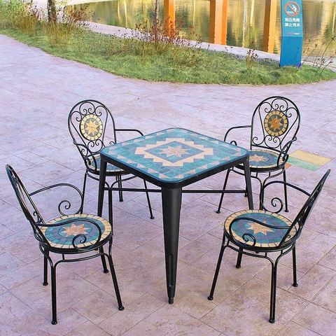 Bán Buôn Giá New Phong Cách Khảm Cổ Bảng Và Ghế Vườn Ngoài Trời Đồ Nội Thất Kim Loại Bộ Đồ Nội Thất